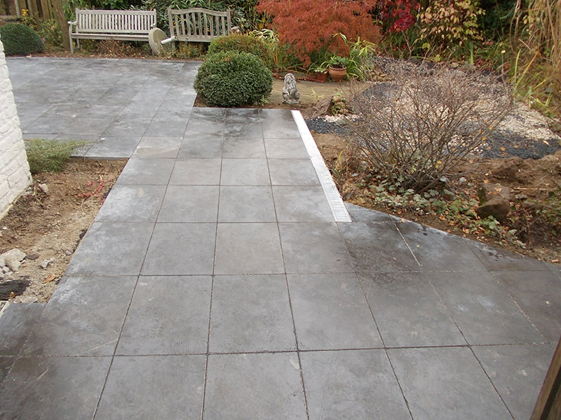Wir bieten Pflasterarbeiten in verschiedenen Materialien an: Naturstein, Beton Pflaster und Platten.